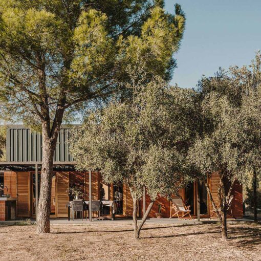 La marquesina es simplemente una losa alveolar de hormigón blanco fabricada para forjados, la cual se apoya sobre unos pilares metálicos a los que se atornillan para su sujeción. En este caso son 6 piares los que sustentan la losa.